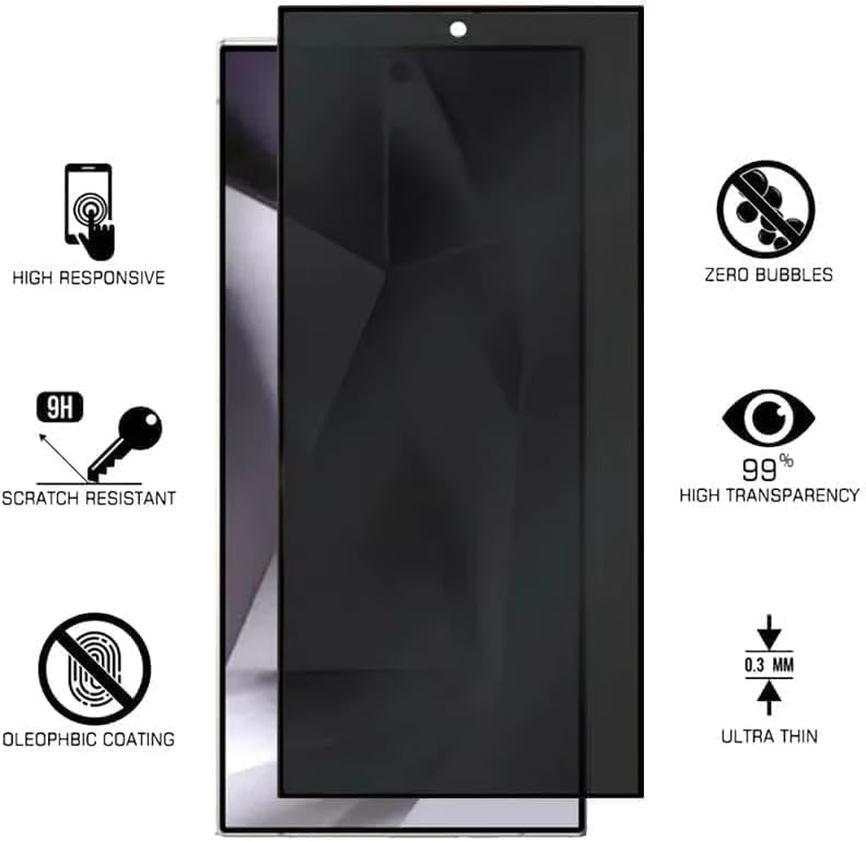 Generic - واقي شاشة زجاجي حساس للصمغ بالكامل للخصوصية يدعم بصمة الاصبع لموبايل سامسونج جالاكسي - (S24 الترا)