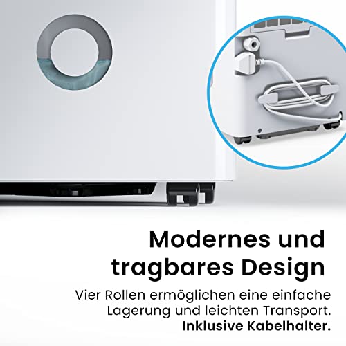 - AUTOMATIC Humidity SENSOR: The automatic dehumidifier intelligently measures the humidity in the room and shows it on the digital display. You can set the desired humidity between 30% and 80%. Once this level is reached, the energy-efficient dehumidifier switches off automatically to save energy.