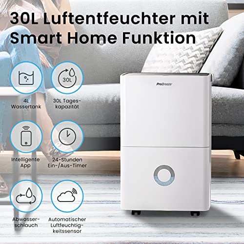 Pro Breeze - Pro Breeze 30L/Day Smart Compressor Dehumidifier with Smartphone App, Wi-Fi, Continuous Drainage, 4L Water Tank and 24h Timer - Portable Mould and Moisture Absorber