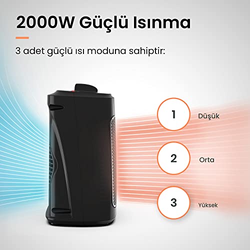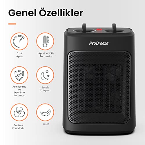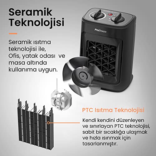 Pro Breeze - Pro Breeze Mini Ceramic Heater 2000W 3 Levels of Power, Compact Space Heater for Office, Bedroom, Living Room, Black
