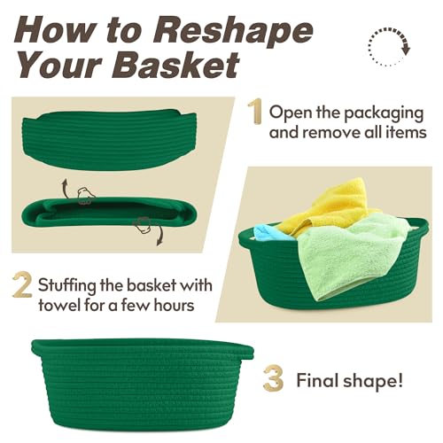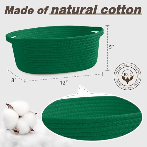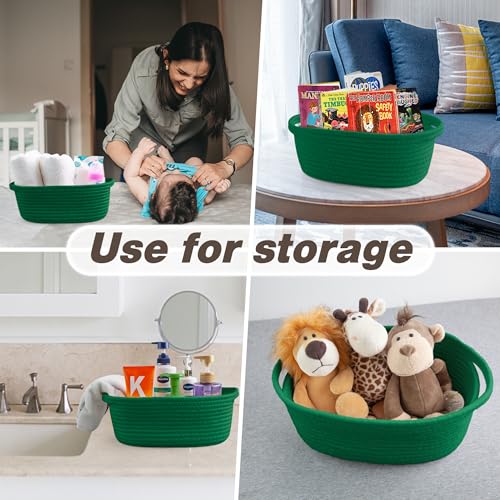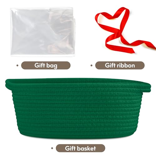 Pro Goleem - Pro Goleem Small Woven Basket with Gift Bags and Ribbons Durable Baskets for Gifts Empty Small Rope Basket for Storage 12"X 8" X 5" Baby Toy Baskets with Handles, Green