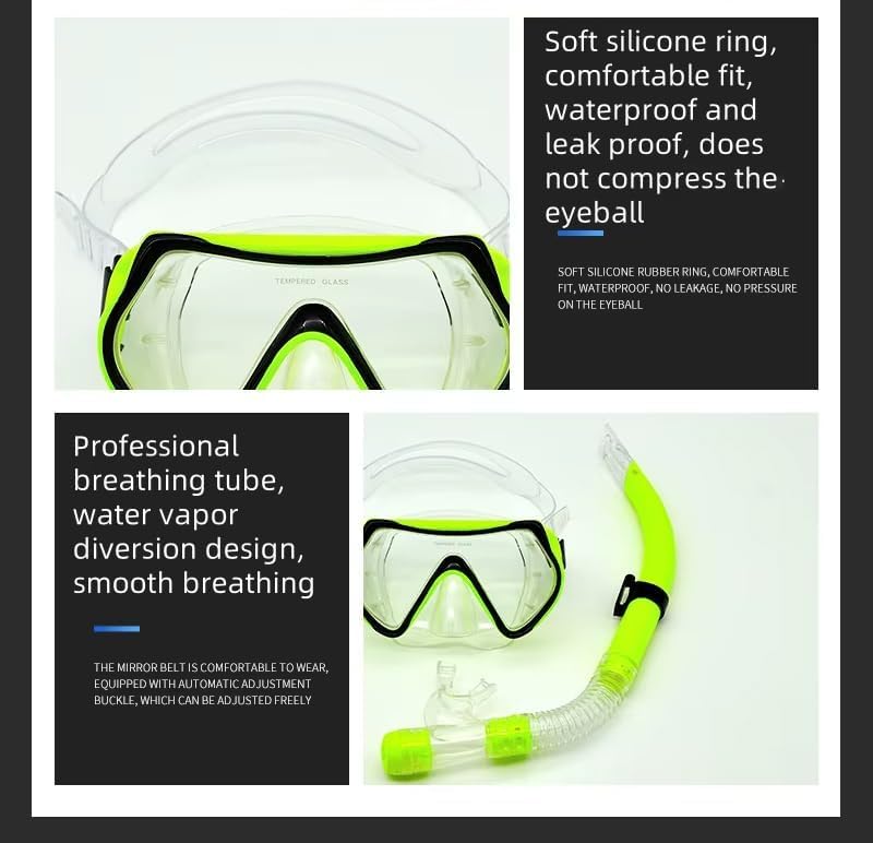 XG Store - Pro Max Snorkeling Set – Anti-Fog Diving Mask with Dry Top Snorkel – Leakproof Silicone Skirt – Tempered Glass Lens Multicolor - Shapes May Vary