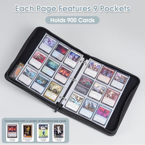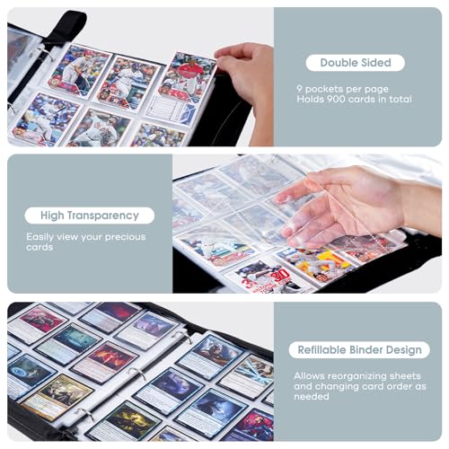 ProCase - ProCase 900 Pockets Card Binder with Clear Window for Trading Cards, 9 Double Sided Pockets Cards Colletction Album Holder with Removable Sleeves for MTG, TCG, Sports Cards, Football Cards -Black