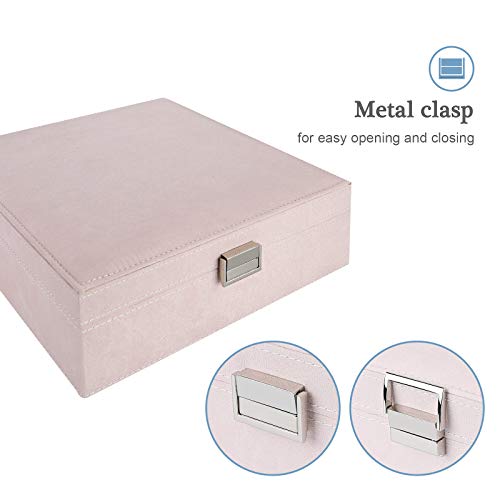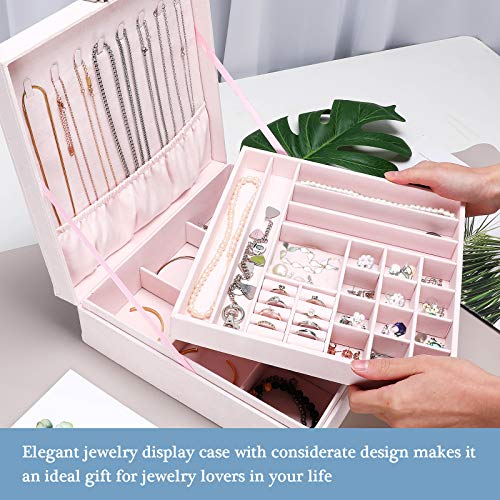 ProCase - بروكيس صندوق منظم للمجوهرات مجوهرات بمستويين هدايا تخزين مع فاصل قابل للازالة للاقراط والاساور والخواتم والقلائد بينك معدن زهري