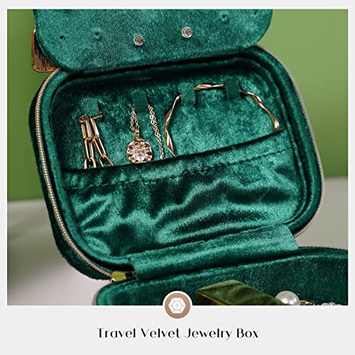 ProCase - ProCase Plush Velvet Jewellery Box, Portable Travel Case, Small Box Organizer for Women, Mini Compact Jewelry Storage with Mirror Traveling, Gifts Women -Emerald, Green (PC-08363618)