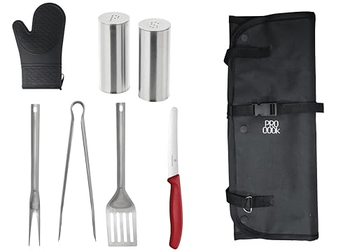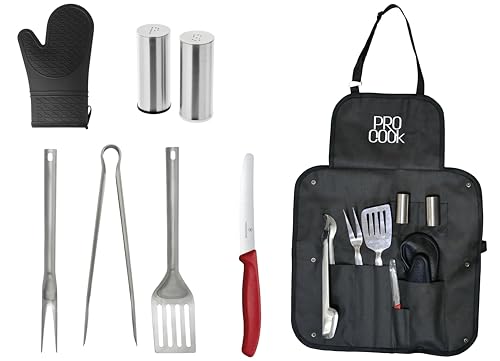 ProCook - مجموعة ادوات شواء مع مريلة مقاومة للماء من بروكوك، اسود