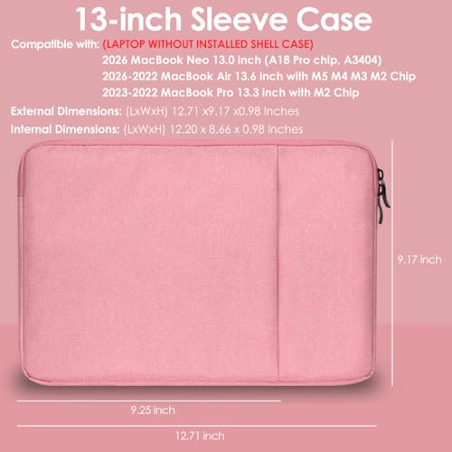 ProElife - حافظة حماية من برو إيلايف لماك بوك اير 13.6 إنش M3 M2، جراب مصنوع من الكانفاس والسويد باللون الوردي