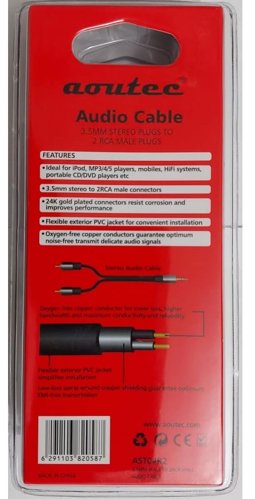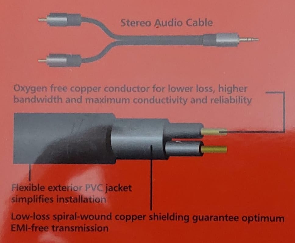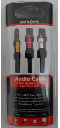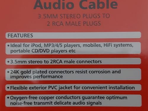 Generic - كابل صوت احترافي 3.5 ملم الى 2 ار سي ايه مطلي بالذهب عيار 24 قيراط - 1 متر