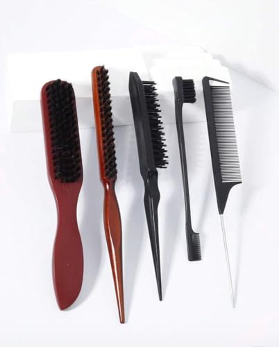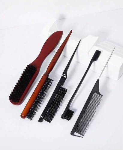 Generic - مجموعة تصفيف الشعر الاحترافية مكونة من 5 قطع، مجموعة فرشاة ومشط للحية، أدوات تصفيف الشعر باللونين البني والأسود لصالون الحلاقة، والتحكم في الحواف، وفك التشابك