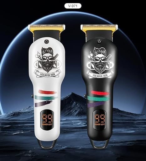 Generic - ماكينة حلاقة وتشذيب شعر اللحية الاحترافية للرجال، لاسلكية مع شاشة رقمية LED، تشغيل مستمر لمدة 120 دقيقة، تتضمن أمشاط توجيه وكابل شحن USB - لون أسود V-971