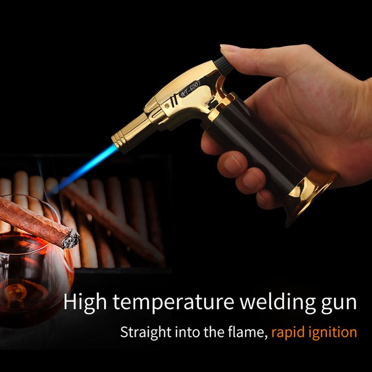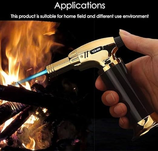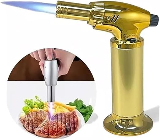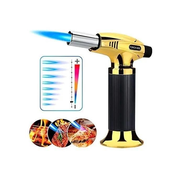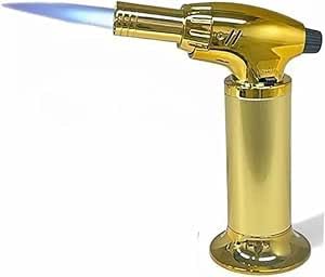 Generic - Professional Butane Torch, Kitchen Culinary Blow Torch with Safety Lock, Adjustable Flame Control, Metal and ABS Construction, for Cooking, BBQ, Crafting (Gold)