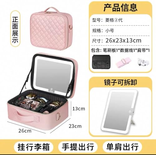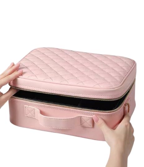 Generic - حقيبة تنظيم مقتنيات التجميل جلد كابوتنيه احترافية - شنطة فاخرة مزودة بمرايا ذكية تاتش و3 درجات إضاءة ليد مع حامل فرش منظم l