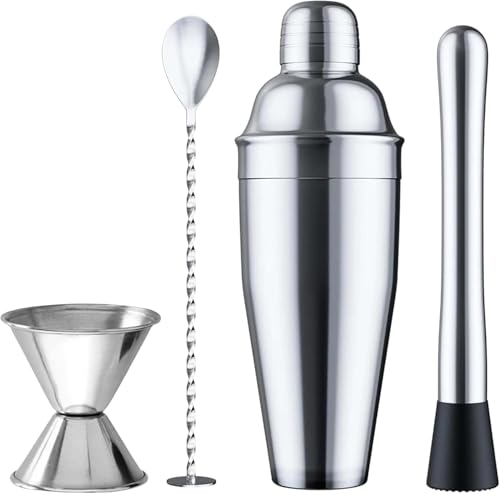 Generic - Professional Cocktail Shaker Set, 4-Piece Stainless Steel Bar Tools Kit with Strainer, Muddler, Jigger, Mixing Spoon for Home Bartending