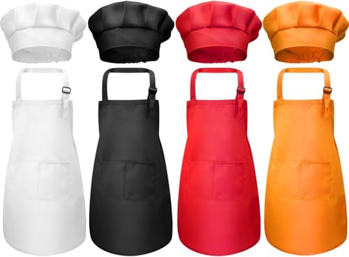 Generic - Professional Cooking Apron and Apron Set, 4 Pieces, Multicolor (White, Black, Red, Orange) with Chef Hat for Kitchen and Cooking