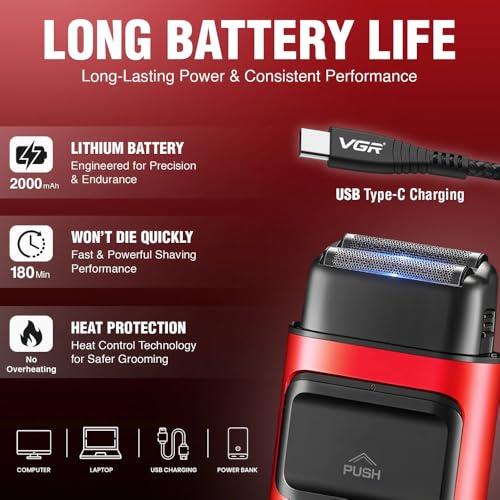 Generic - Professional Electric Foil Shaver, 9000 RPM Motor, Double Titanium-Coated Foils, 180 Min Runtime, Red