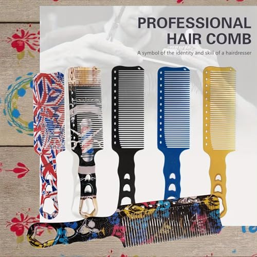Generic - Professional Flat Top Hair Comb with Round Teeth, ABS Material, Heat Resistant Anti-Static Styling Comb with Anti-Slip Design and Hanging Hole for Barbershop and Home Use