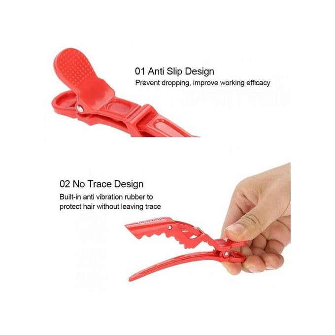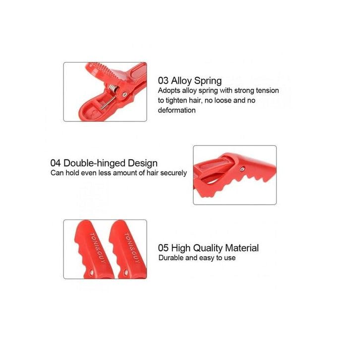 Generic - Professional Hair Clips, 6 Pieces Double Hinge Design Hair Sectioning Clips Anti-Slip Handle, Multicolor (Red)