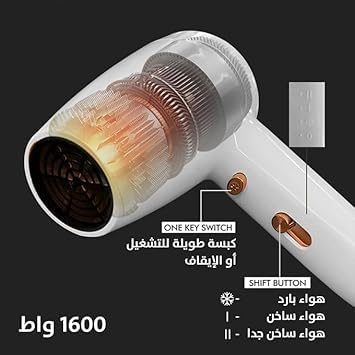 - يوفر مجفف الشعر أداء عملي بقدرة 1600 واط يساعد على تجفيف الشعر بشكل أسرع، مع تصميم مدمج وخفيف يسهل استخدامه يوميًا في المنزل أو الفندق، ومناسب لجميع أنواع الشعر مع 2 سرعة و2 إعداد حرارة.