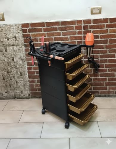 Generic - عربة احترافية بعجلات لصالونات الشعر مع 6 ادراج، اخضر واسود، منظم تخزين دوار مع حوامل ادوات لمجفف الشعر والفرش (ذهبي)