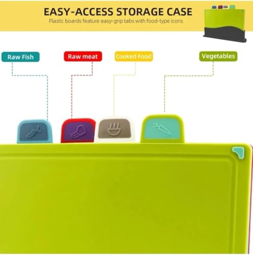 • COLORED DESIGN TO PREVENT cross contamination The set consists of different color panels, each color is specific to cutting a specific type of food (such as red for raw meat, green vegetable), providing the highest level of hygiene and preventing bacteria and flavors from moving between foods.