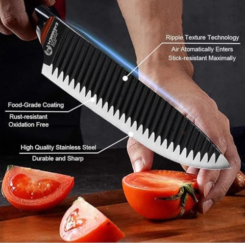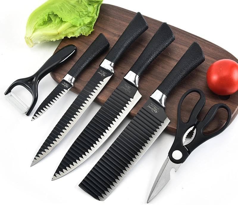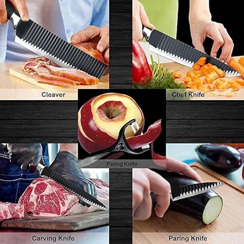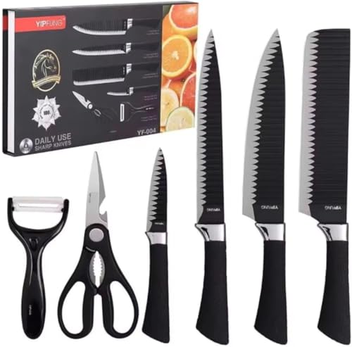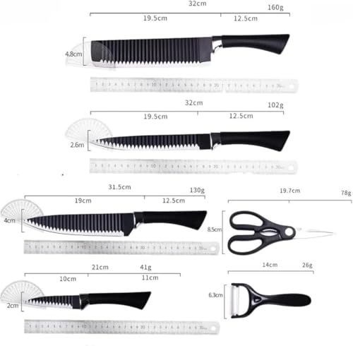 Generic - طقم سكاكين مطبخ احترافية متعددة الاستخدام مع قاطع خضروات ولحوم وفاكهة – شفرات مسننة حادة ومقاومة للصدأ طقم 6 قطع