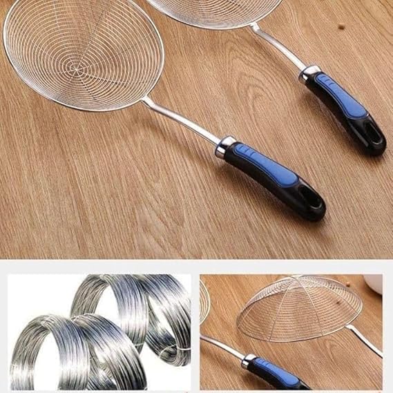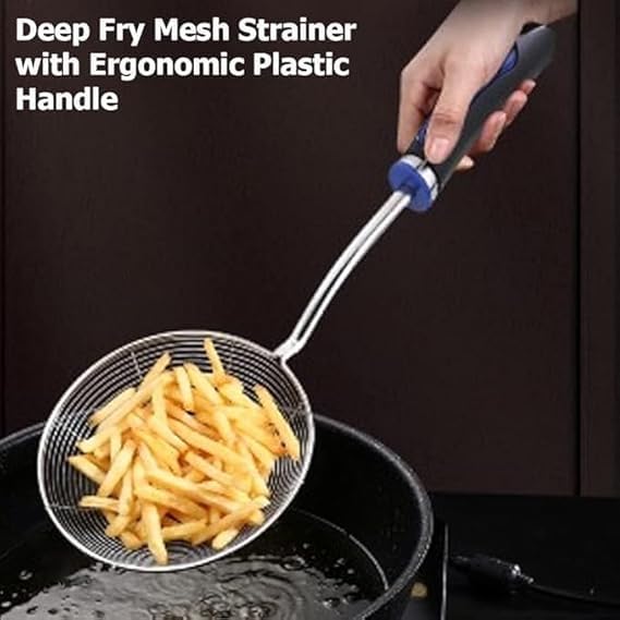 Generic - Professional Kitchen Strainer with Ergonomic Plastic Handle, Stainless Steel Mesh for Deep Frying, Strainer Tool for Home Kitchen