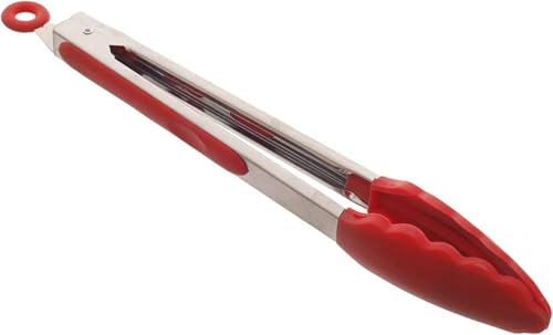 Generic - Professional Kitchen Tongs, Red and Silver, Stainless Steel, with Ergonomic Handle, for BBQ and Kitchen