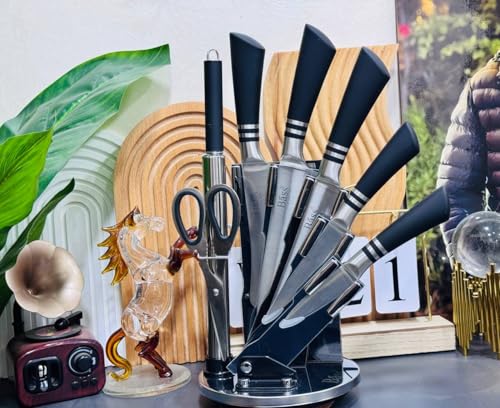 Generic - Professional Knife Set with Rotating Stand, 6 Pieces, Stainless Steel Kitchen Knives with Scissors (black)