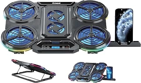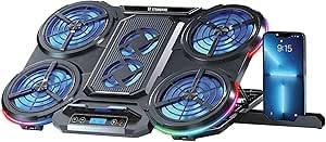 Generic - Professional Laptop Fan - ICE-08-6 Powerful Fans, 10 Modes Magic RGB Lighting, LCD Display, 2 USB Ports, Ergonomic Adjustable Design - Black