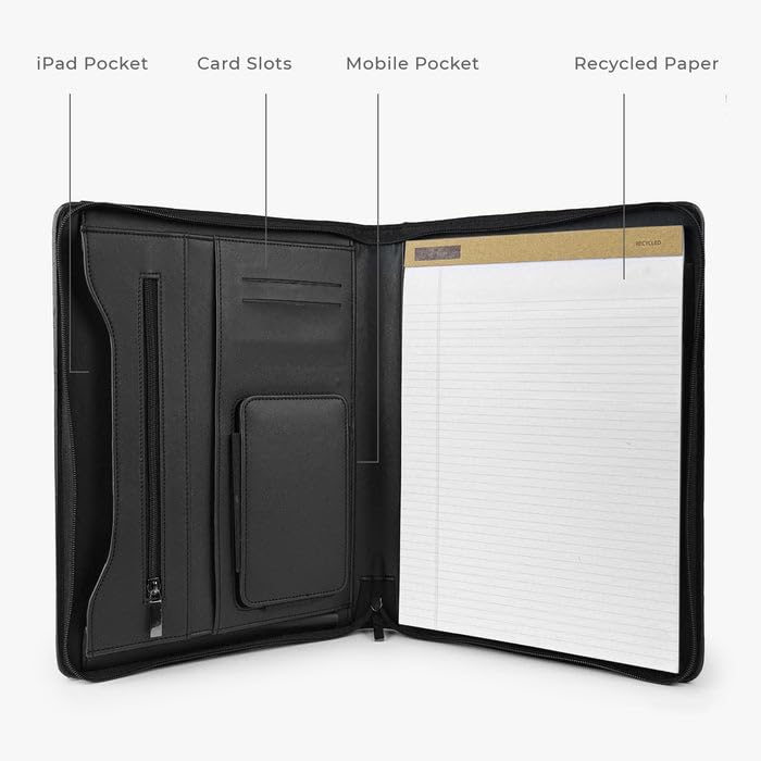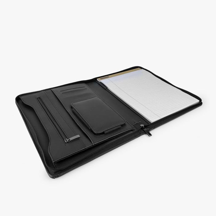 Generic - Professional Leather Portfolio Organiser, 33 x 25.5 cm, iPad 13" Compatible, Black Vegan Leather with Card Slots