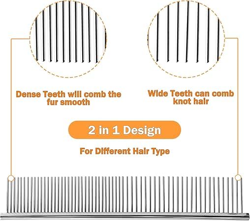 - ١) تصميم ثنائي الوظيفة: أسنان كثيفة لتنعيم الفراء وأسنان متباعدة لفك تشابك الشعر، مما يجعله مثاليًا للاستخدام اليومي