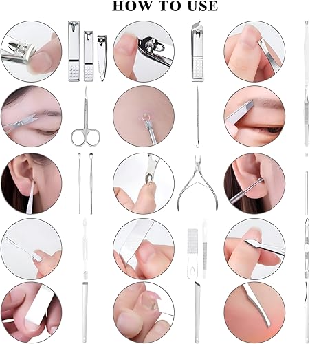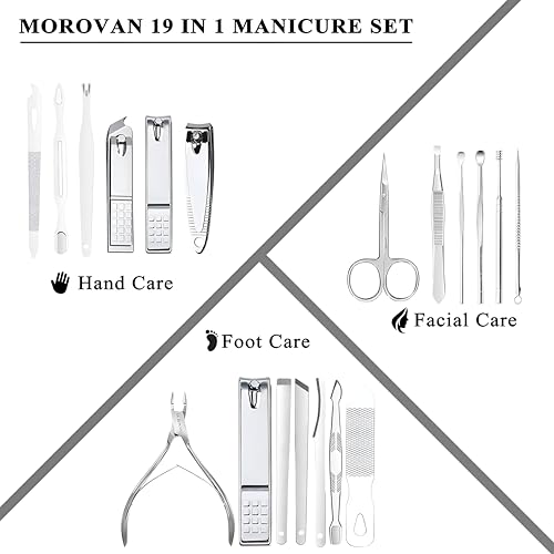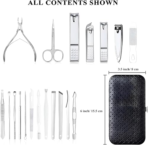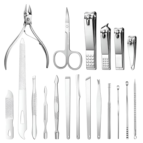 Generic - Professional Nail Set - Complete 19-Piece Stainless Steel Manicure and Pedicure Toolkit for Home and Travel Grooming, Including Clippers, Scissors, Files and Multi-Use Tools