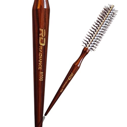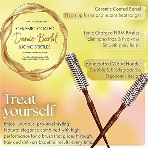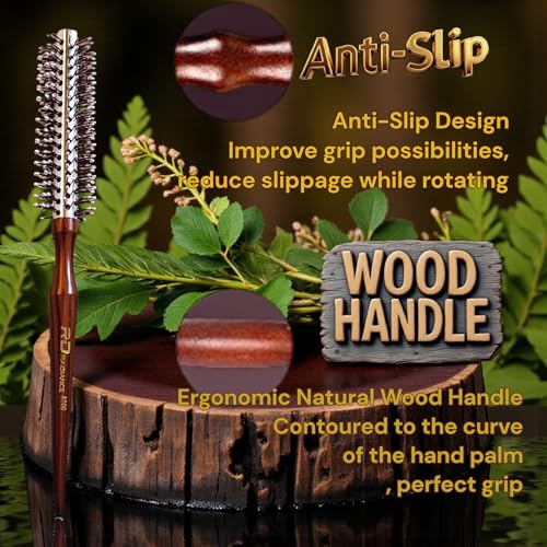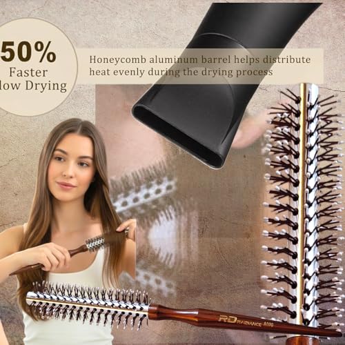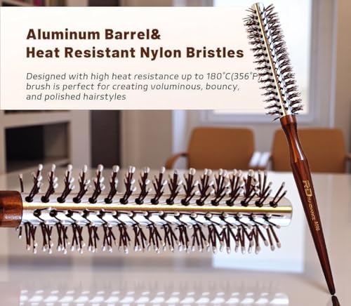 Generic - فرشاة شعر دائرية احترافية مع اسطوانة مطلية بالسيراميك، شعيرات ايونية، مقبض خشبي مصنوع يدويًا، قلب من الالومنيوم على شكل قرص العسل لتجفيف وتصفيف سريع، A000