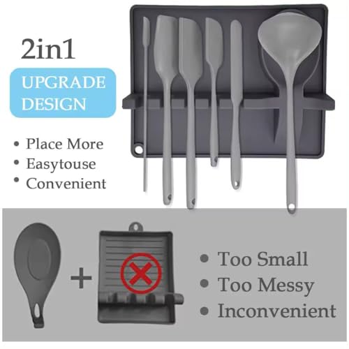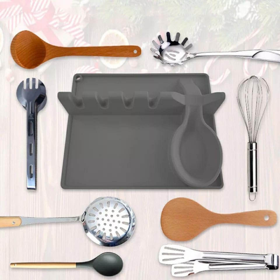 Generic - Professional Silicone Spoon Rest Jumbo – Heavy Duty Heat Resistant Kitchen Utensil Holder for Multiple Tools – Flexible Easy Storage Mat – Premium Quality (Gray (one pack))