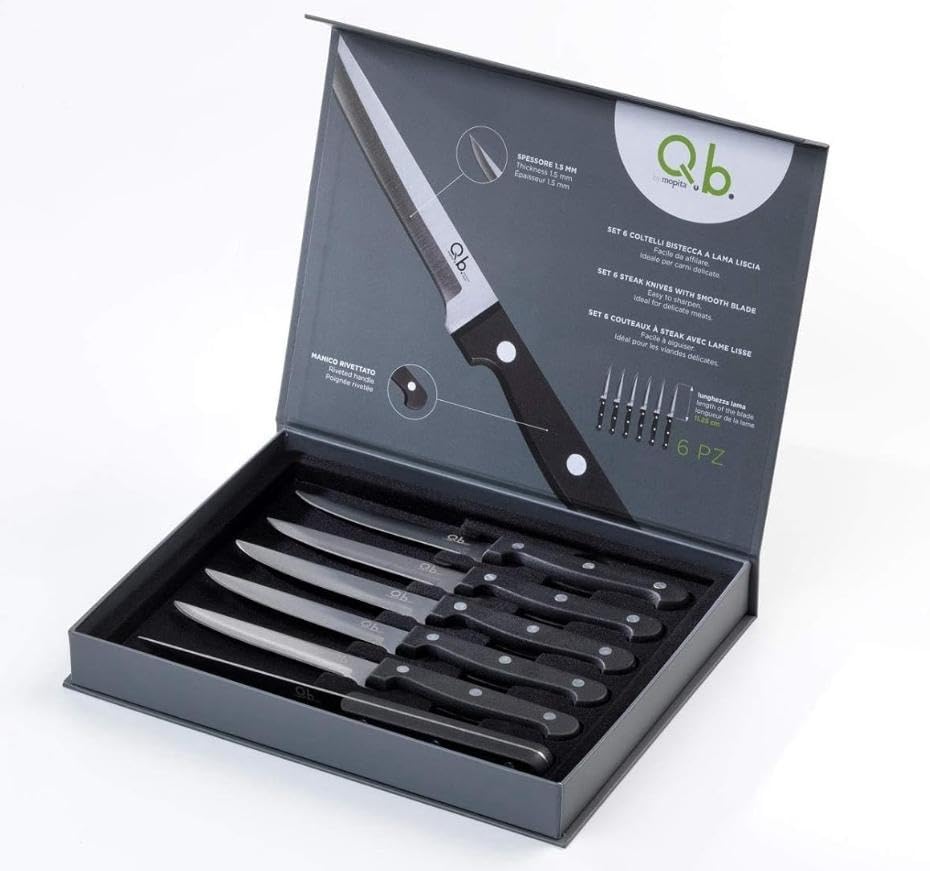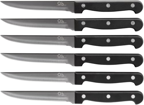 Generic - مجموعة سكاكين ستيك احترافية من 6 قطع، بشفرة ناعمة من الستانلس ستيل، شفرة 4.4 انش، مجموعة سكاكين من 6 قطع بمقبض مثبت من بلاستيك البروبيلين امنة للاستخدام في غسالة الصحون (ناعمة)
