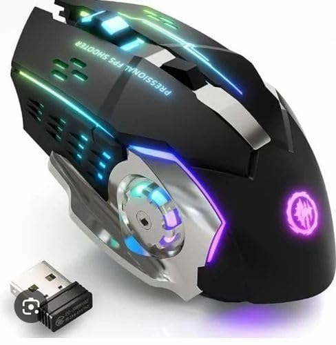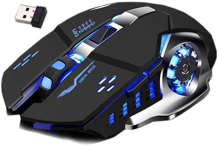 Generic - ماوس لاسلكي احترافي للألعاب قابل للشحن، 6 أزرار بإضاءة LED زرقاء، DPI قابل للتعديل 800/1200/1600، للكمبيوتر المحمول والكمبيوتر الشخصي
