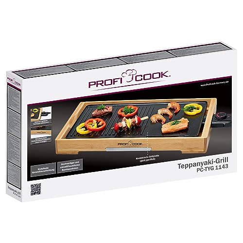 Profi Cook - Profi Cook 1143 Teppanyaki Scratch-Resistant Ceramic Coating, Fully Adjustable Thermostat, Removable Stainless Steel Grease Tray, Wood Grill (Black)