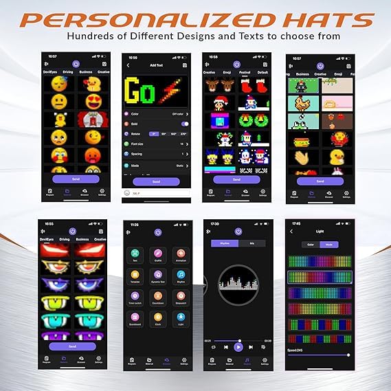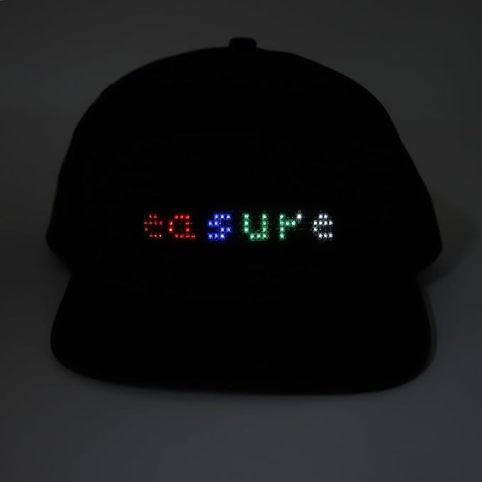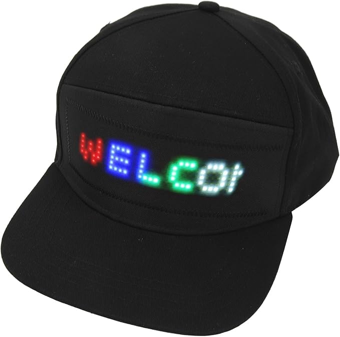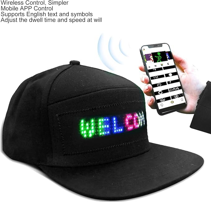 Generic - Programmable LED Display Hat with Bluetooth App Control, Adjustable Smart Baseball Cap with Customizable Scrolling Text, Black