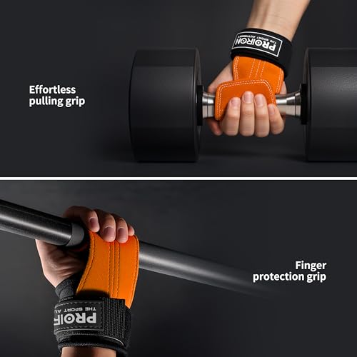 PROIRON - PROIRON Weight Lifting Wrist Straps Double Layer Leather Weightlifting Wrist Strap Heavy Duty Power Wrist Straps Hand Grip Support for Deadlifts, Pull Ups, Shrugs for Men and Women
