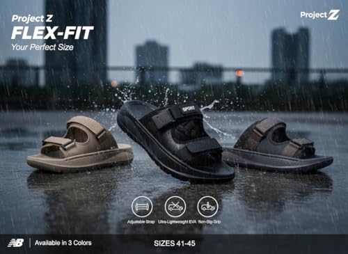 Project Z - Project Z Flex-Fit Men's Slippers – Ultralight Medical EVA – Adjustable & Coach for Perfect Fit – Flexible Anti-Slip Sole – Comfortable for Walking, Home, and Summertime – Sizes (41 to 45)