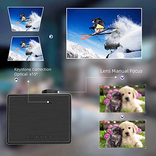 - Free focus and ±15° keystone correction: the projector makes focusing easier and allows clear images and videos in just a few seconds. It has a 4:3/16:9 aspect ratio and a keystone correction of ±15°. The projector features advanced color engine and the latest 5-layer LCD lens (+80% brightness compared to similar projectors), making it a brilliant choice for home or outdoors.