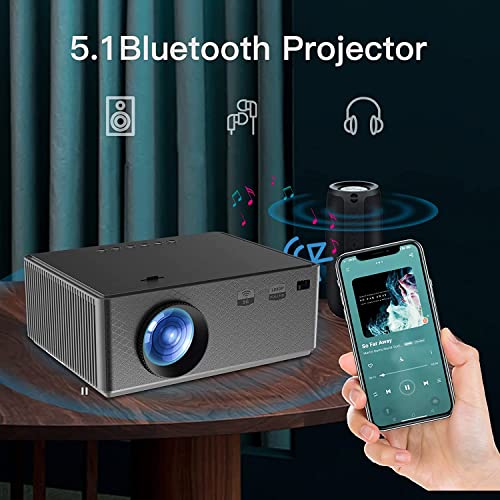 - With Bluetooth 5.1 chip, 3 W HiFi stereo speaker: built-in powerful 5 W HiFi stereo speakers and an SRS sound system, the Bluetooth projector offers you an immersive sound, certainly meets your sound quality requirements when watching movies or listening to music. You can also connect to an external speaker or headphones without delay. Listen to what you want, not what you don't want.
