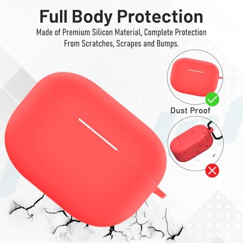 Prolet - Prolet Silicone Protective Case for Realme Buds T300 | Soft, Shockproof & Dustproof 360° Full Cover with Hook | Lightweight & Durable Earbuds Case (Red)