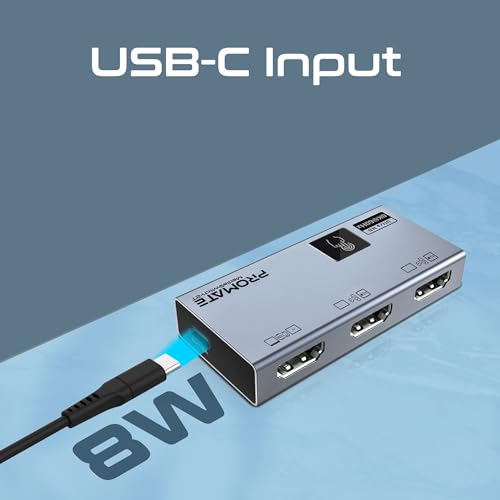 Promate - Promate HDMI Switch Adapter, Premium Ultra High-Resolution Switch with 8K @60Hz Display, 3 HDMI Ports, Touch Control and Ultra-Compact Design
