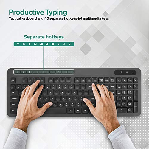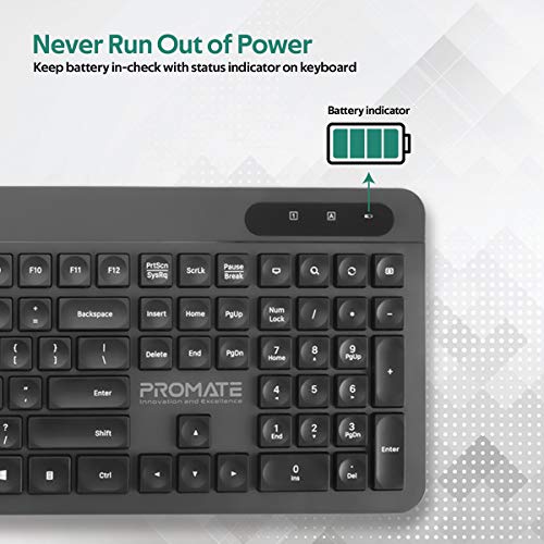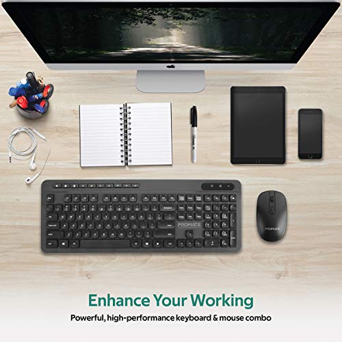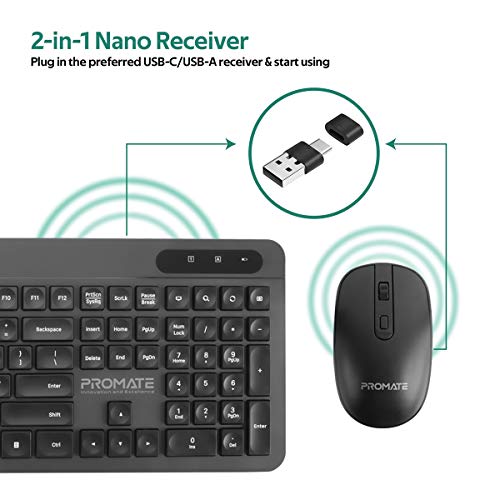 Promate - لوحة مفاتيح وماوس لاسلكية USB-C من بروميت، لوحة مفاتيح بحجم كامل 2.4 جيجاهرتز وماوس 1600 نقطة لكل 2.54 سم مستقبل USB A/USB-C و14 مفتاح وصول سريع لماك بوك برو وماك او اس والكمبيوتر وبرو كومبو-11 E/A