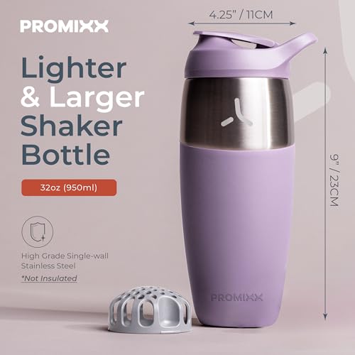 Promixx - بروميكس زجاجة شيكر من بيرسوت - زجاجة خلط البروتين من الستانلس ستيل بجدار واحد، مخفوق فائق النعومة، 950 مل، بنفسجي فاتح