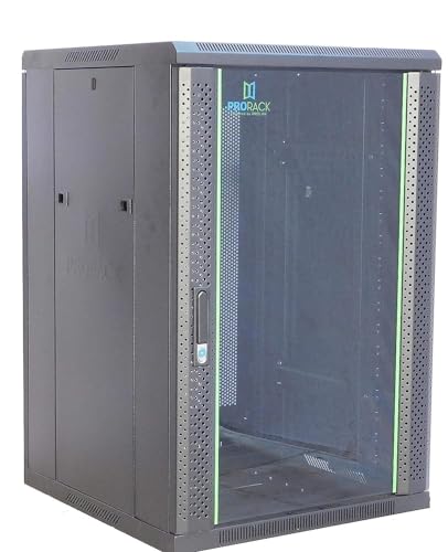 ProRack - خزانة تثبت على الحائط 15U 600 × 600 مع باب زجاجي ومروحة ورف واحد و1 منفذ بي دي يو 6 (غير مثبتة)