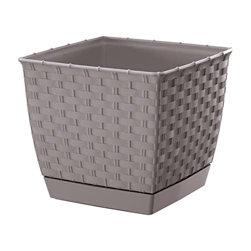 - The Ratolla Square DRLK Prosperplast flower pot with a square base faithfully imitates rattan braid.
