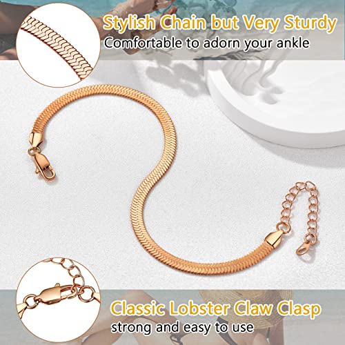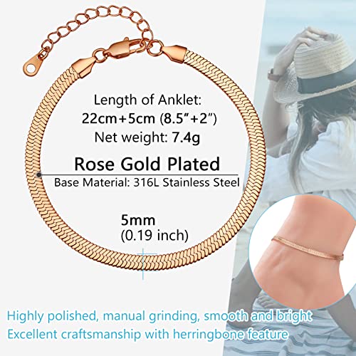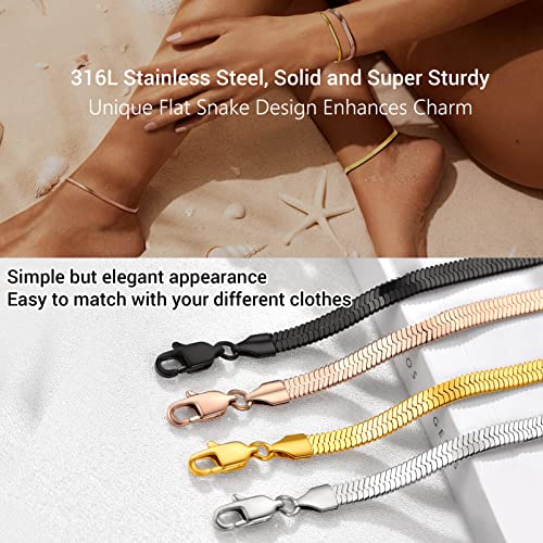 PROSTEEL - PROSTEEL 316L Stainless Steel Herringbone Flat Chain Bracelets/Anklets, Beautiful Summer Jewelry, Black/Yellow Gold/Rose Gold Plated, 6.3inch/8.5inch Adjustable, Come Gift Box, Metal, no gemstone