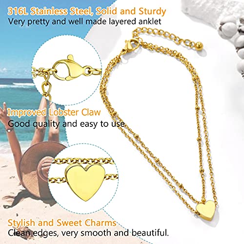 PROSTEEL - PROSTEEL Ankle Bracelets For Women Summer Beach Womens Anklets Jewelry Cute Dainty Gold Bracelet Layered Heart Anklet